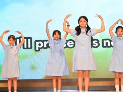 學生以Action Song (歌詠舞蹈) 的方式,於不同類型的宗教活動,帶領同學一起感謝和讚美天主。
