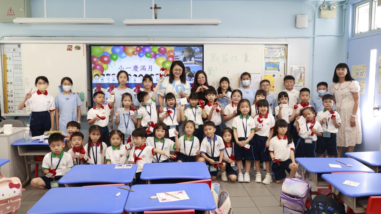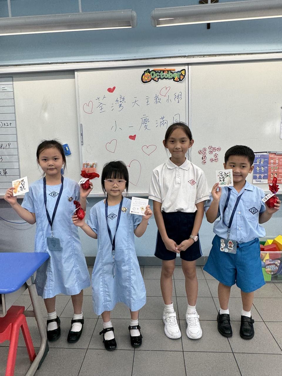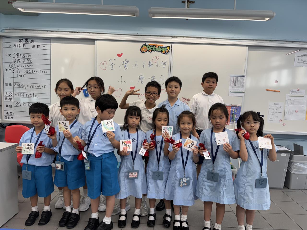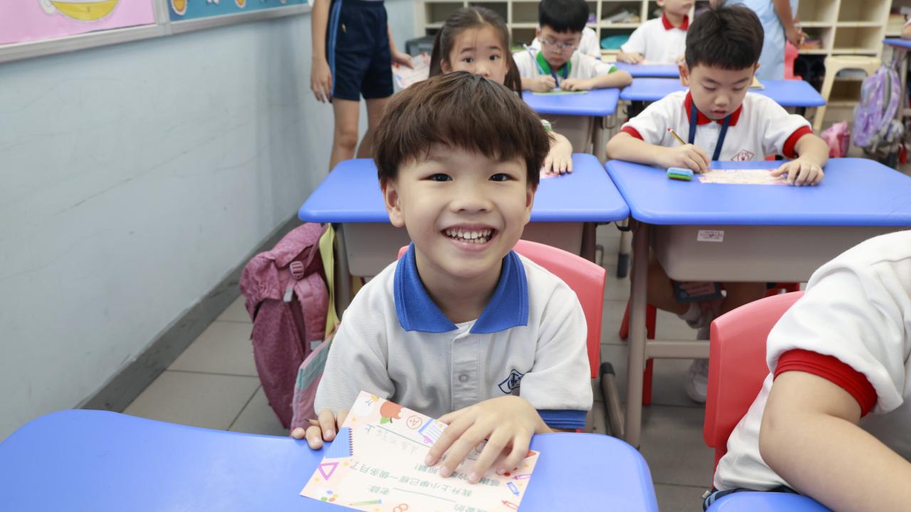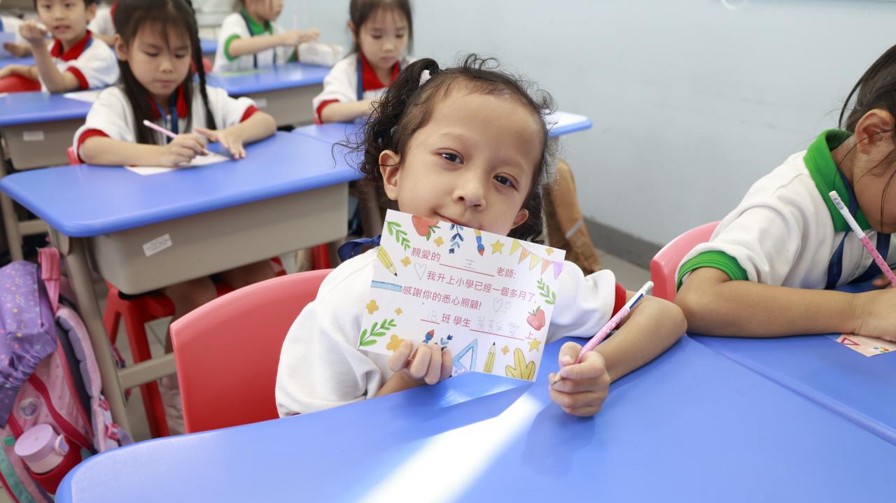 一年級學生慶祝他們在荃天學習的第一個月,並撰寫心意卡送贈老師。