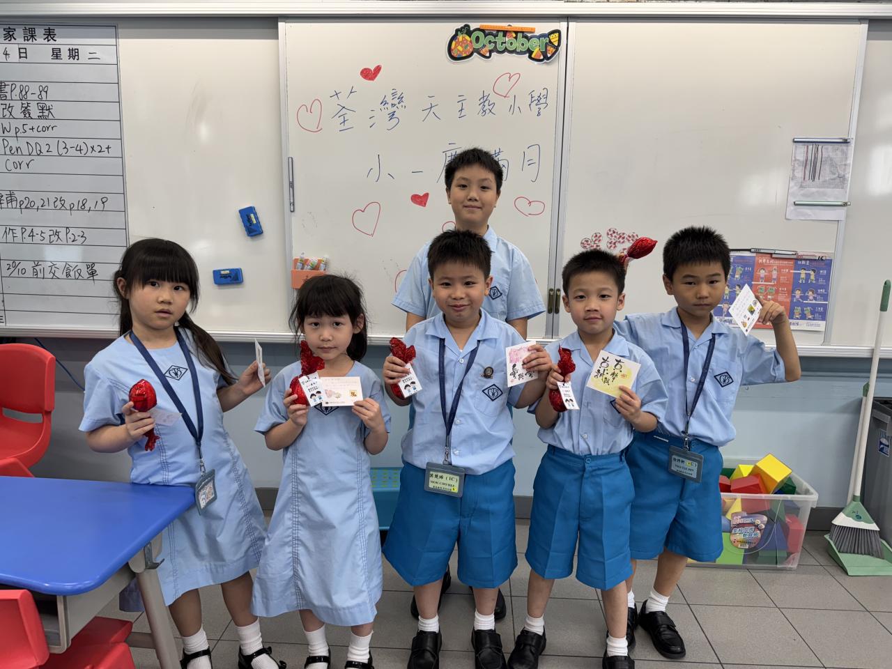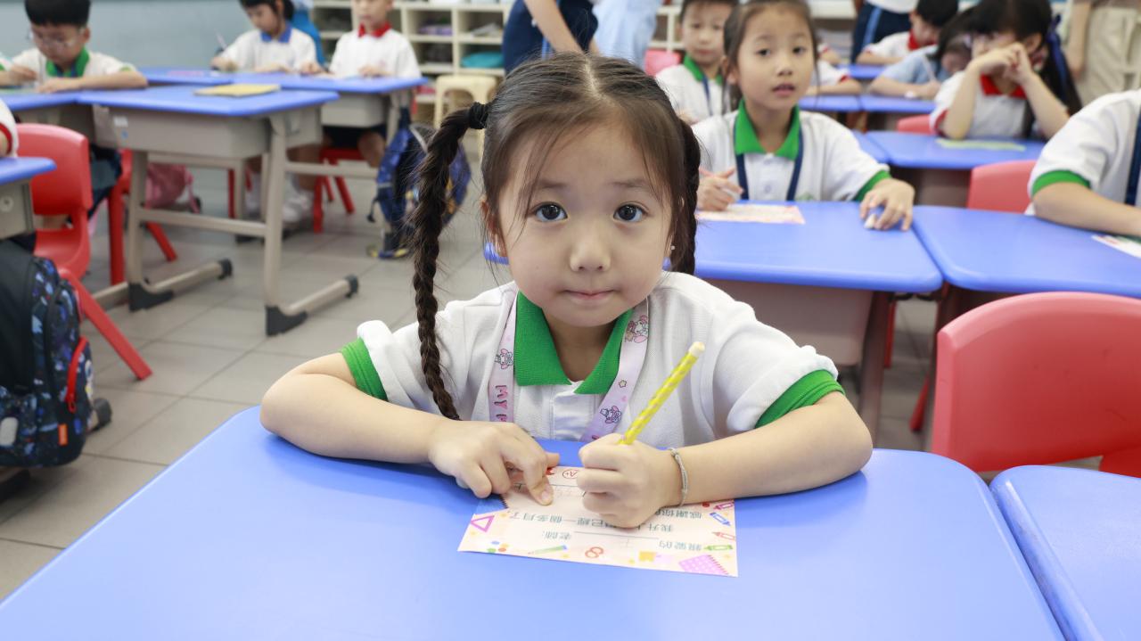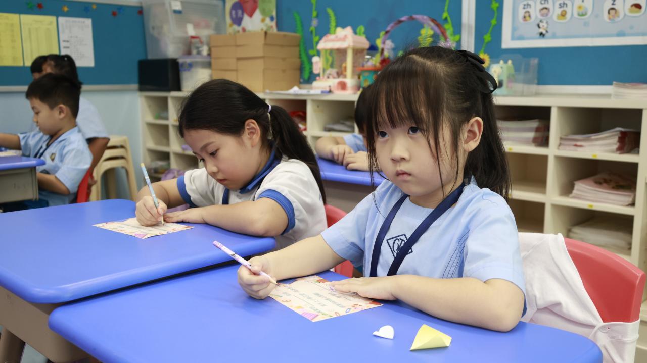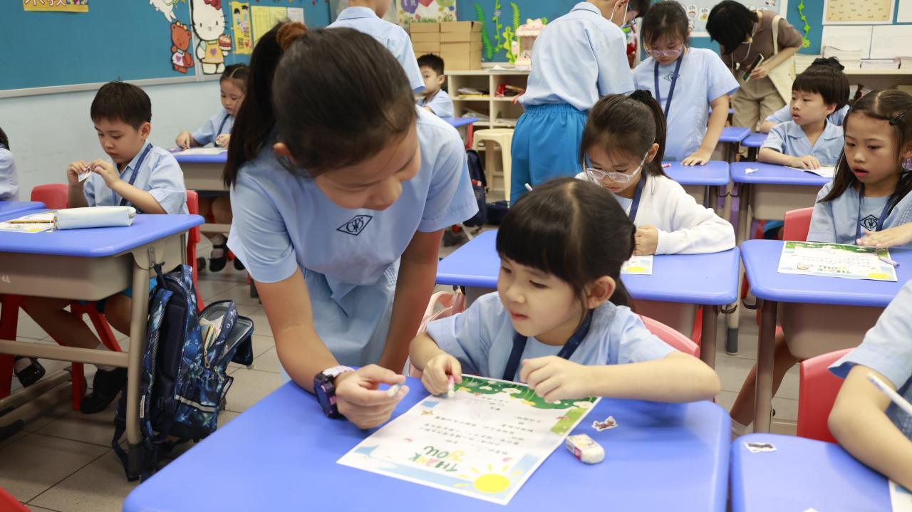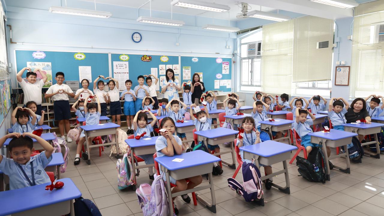 一年級學生慶祝他們在荃天學習的第一個月,並撰寫心意卡送贈老師。