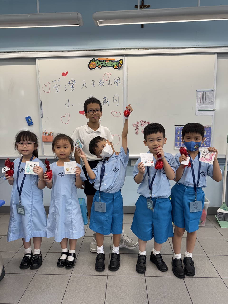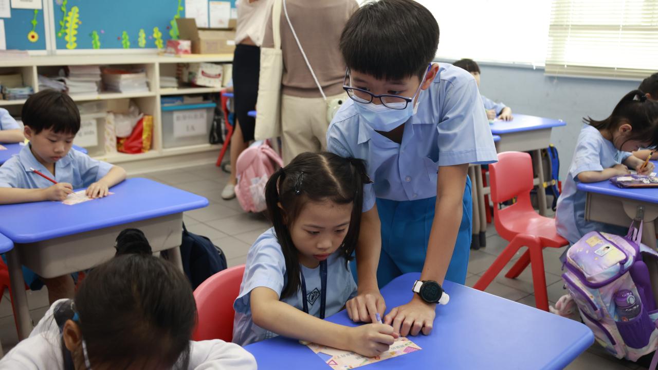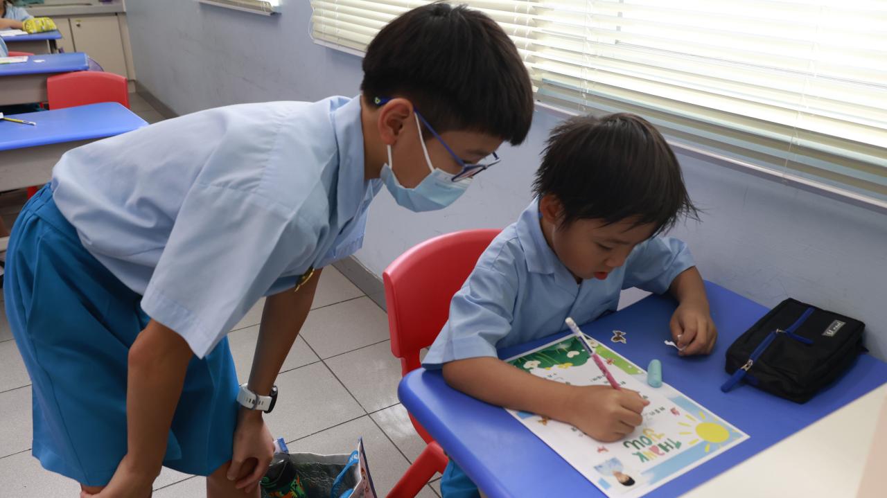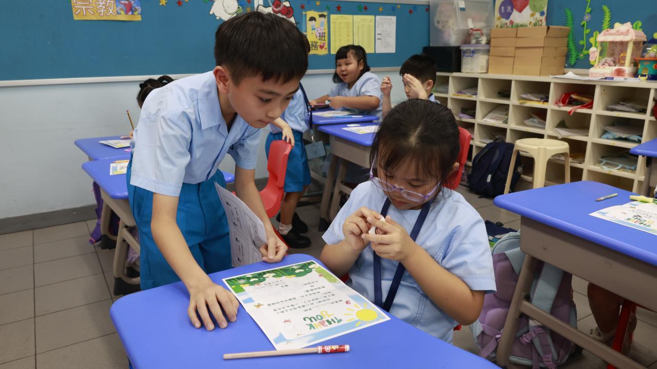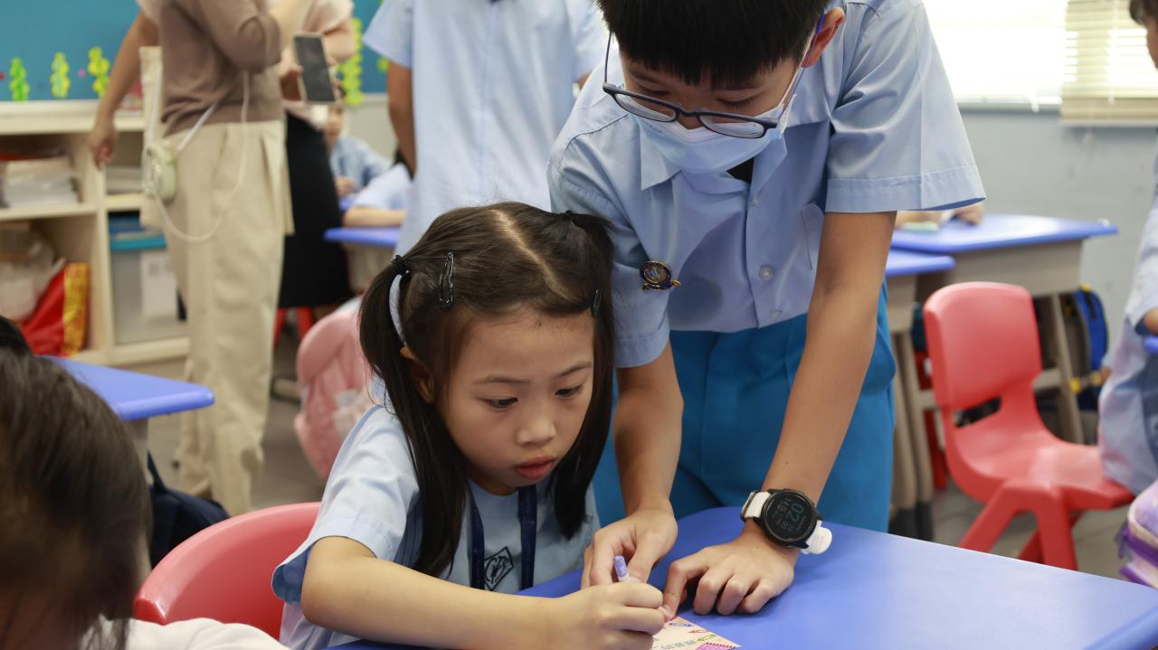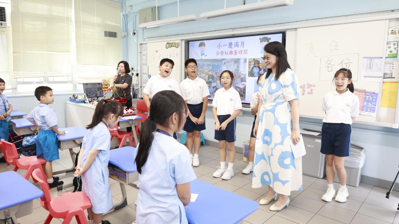 一年級學生慶祝他們在荃天學習的第一個月,並撰寫心意卡送贈老師。