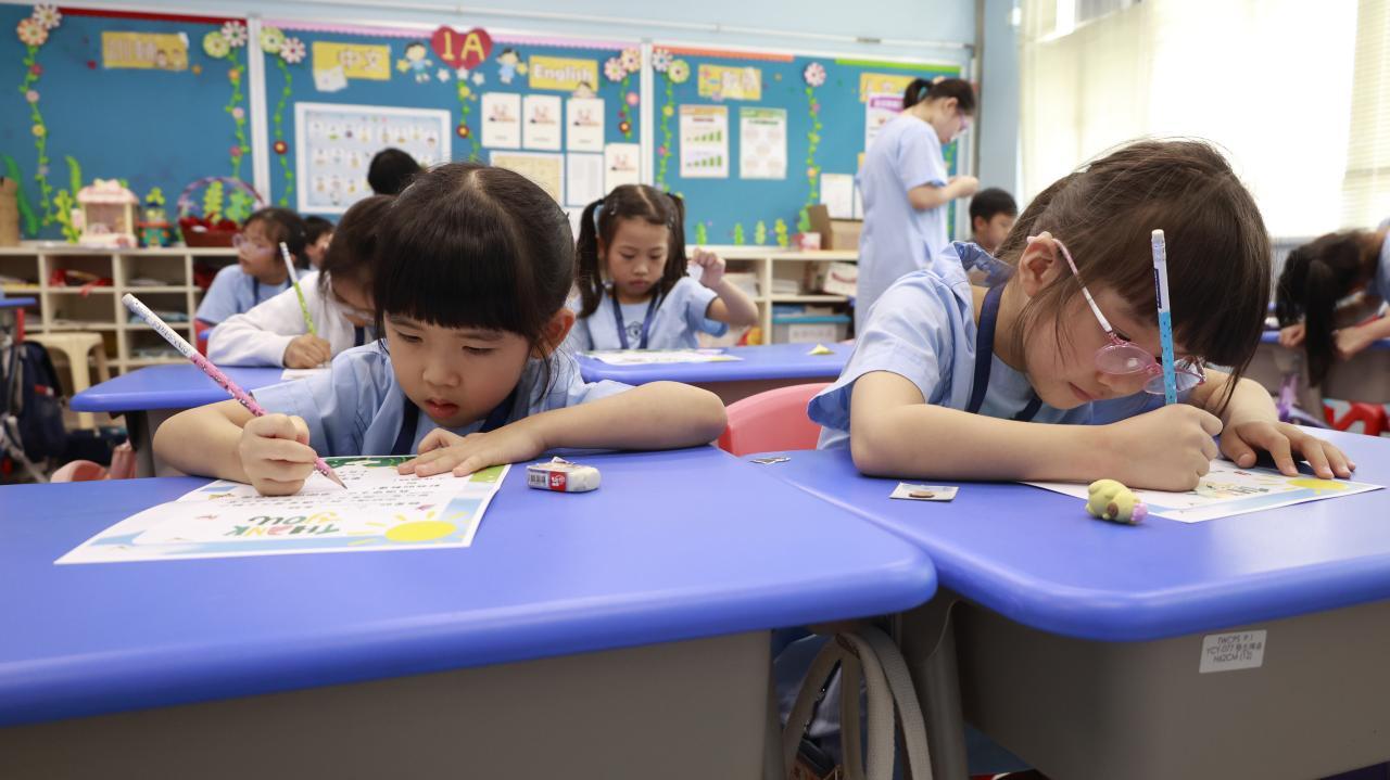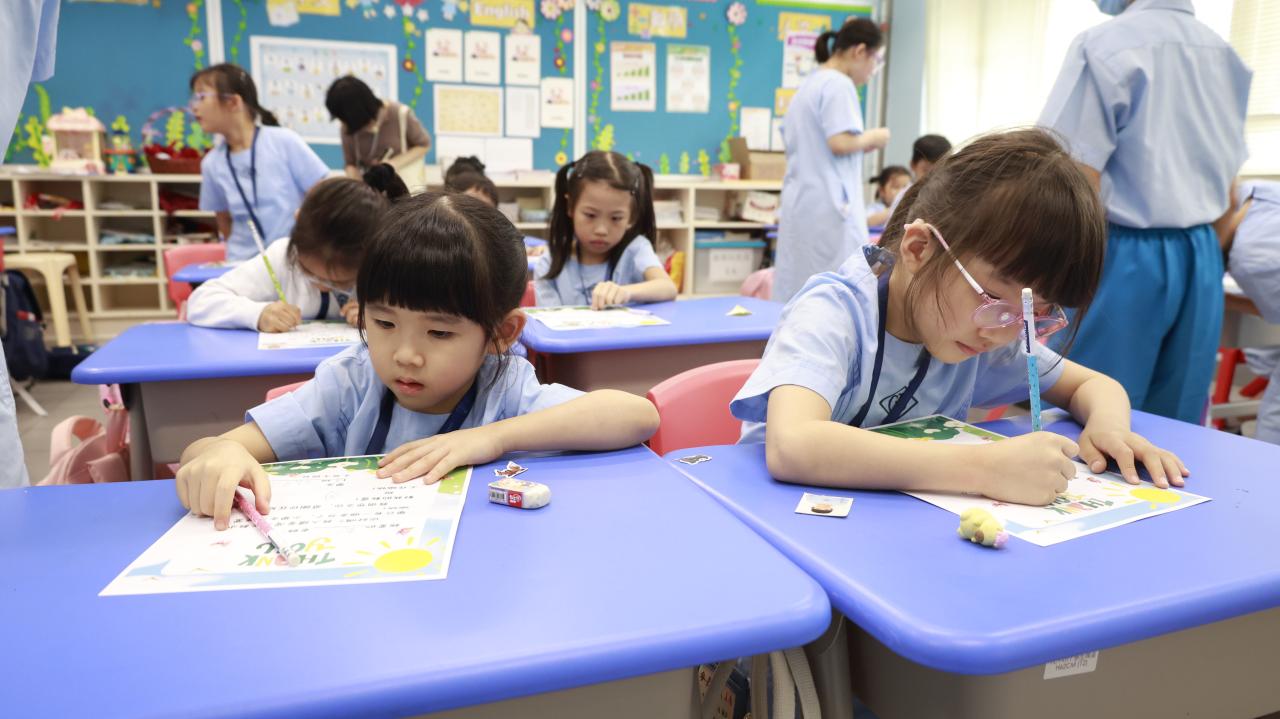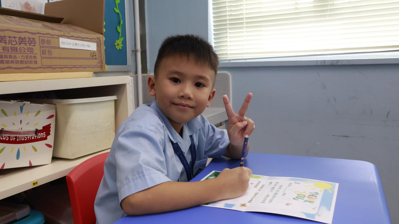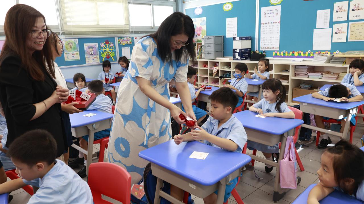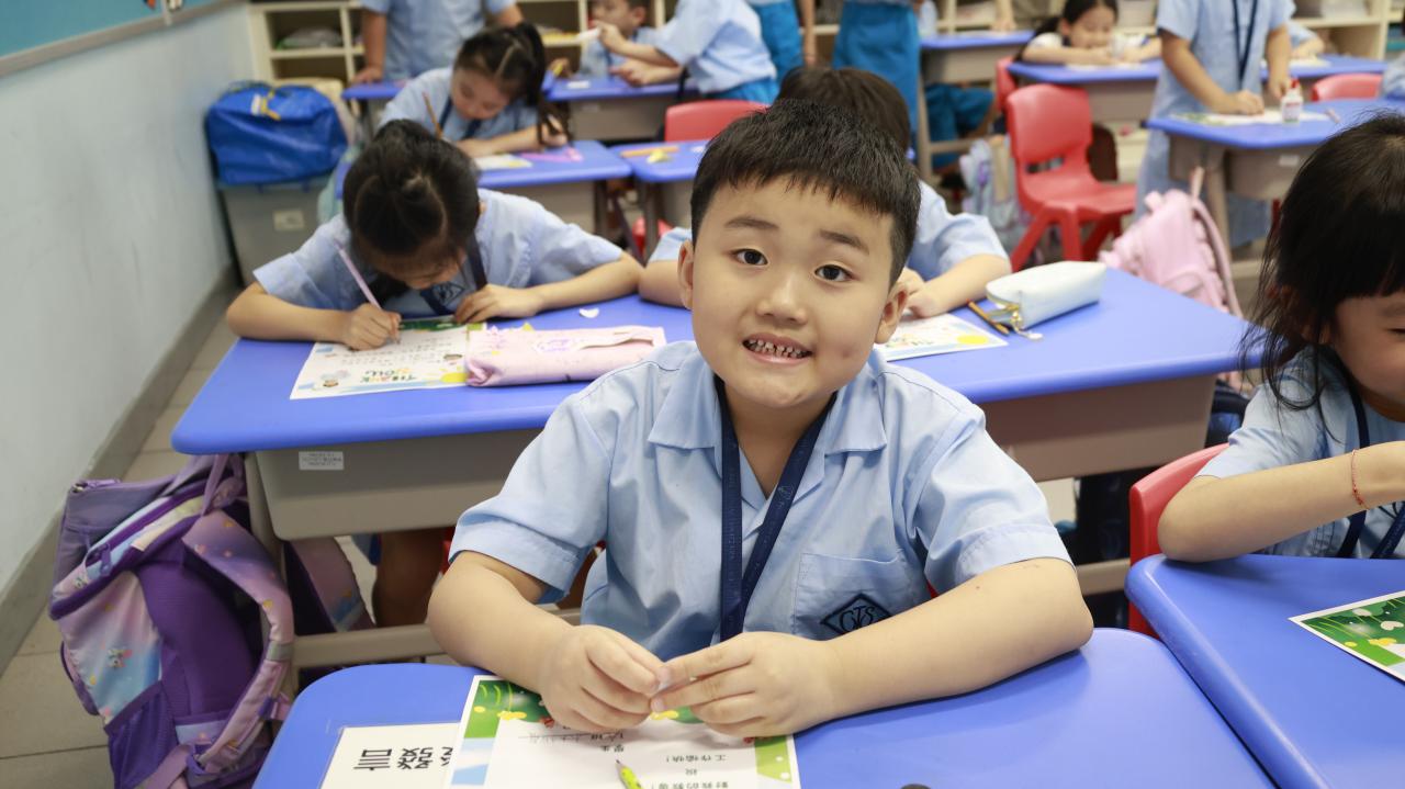 一年級學生慶祝他們在荃天學習的第一個月,並撰寫心意卡送贈老師。