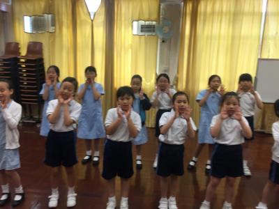學生以Action Song (歌詠舞蹈) 的方式,於不同類型的宗教活動,帶領同學一起感謝和讚美天主。