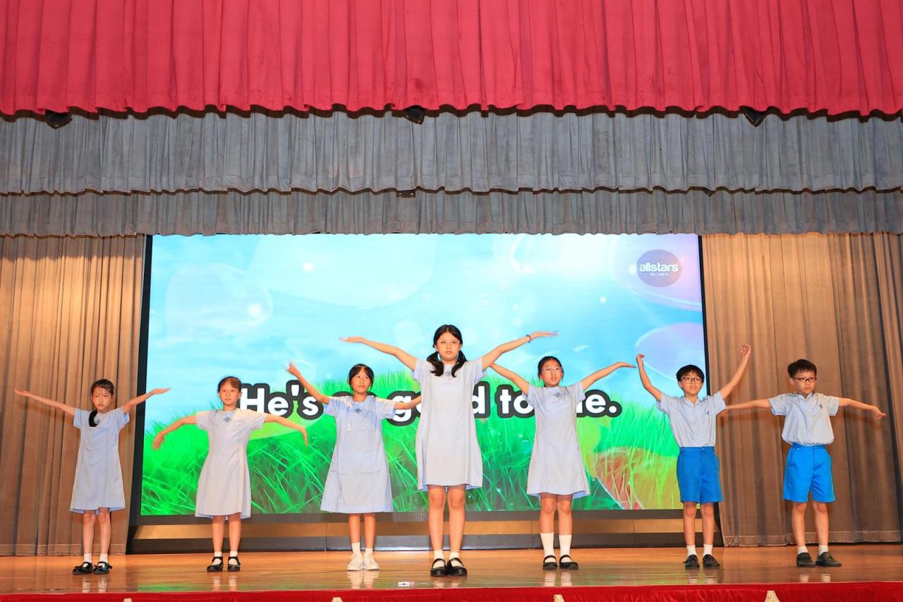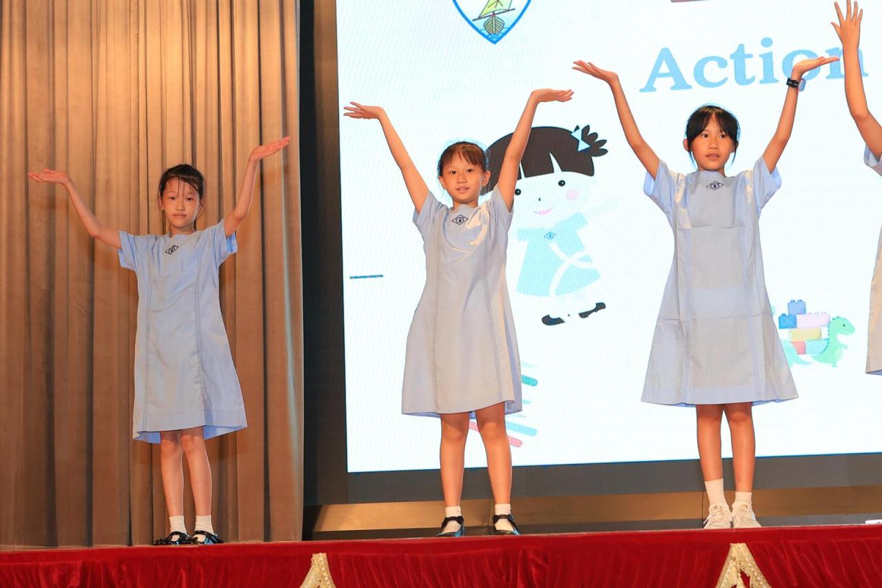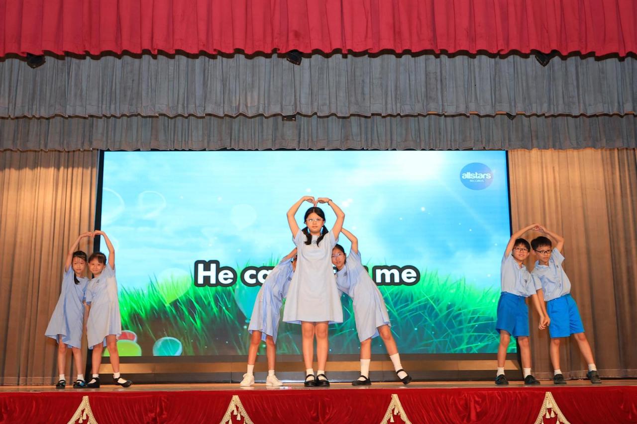 學生以Action Song (歌詠舞蹈) 的方式,於不同類型的宗教活動,帶領同學一起感謝和讚美天主。